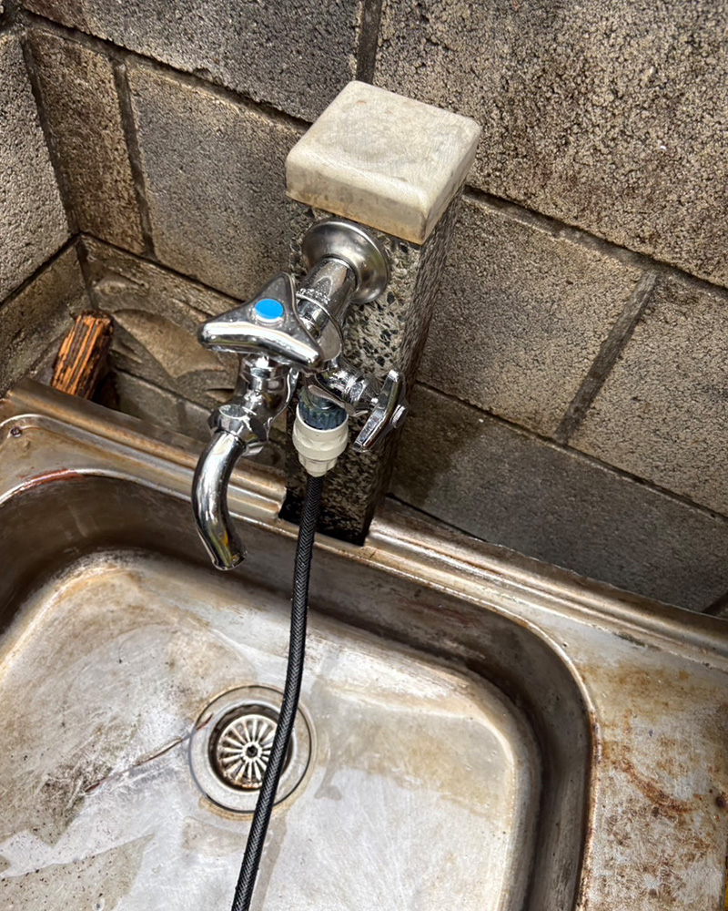 点検した所、かなり劣化が見られ、ハンドル部分も錆びついてかなり捻りづらく蛇口の接着部から水が漏れている状況だった為交換対応いたしました。